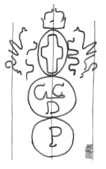 DescripciónEscudo de Génova sobre dos círculos con iniciales.