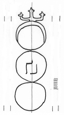 DescripciónTres círculos surmontados por una cruz lombarda o tridente. En el 1º: una media luna, el segundo líneas.