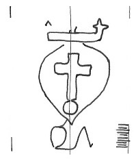 DescripciónUna cruz dentro de un corazón o escudo surmontado por una corona. Al pie iniciales.