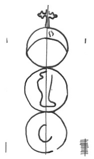 DescripciónTres círculos surmontados por una cruz. En el 1º una media luna, 2ª una pierna, 3º inicial.