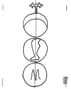 DescripciónTres círculos surmontados por una cruz. En el 1º una media luna, 2ª una pierna, 3º inicial.