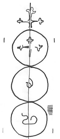 DescripciónTres círculos surmontados por una cruz. En el 1º una Una cruz, 2º y 3º ilegible.