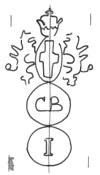 DescripciónEscudo de Génova sobre dos círculos 1º con iniciales.2º número.