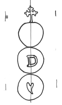 DescripciónTres círculos surmontados por una cruz. En el 1º una media luna, 2ª inicial, 3º corazón.