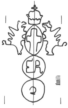 DescripciónEscudo de Génova sobre dos círculos. 1º con iniciales. 2º número.