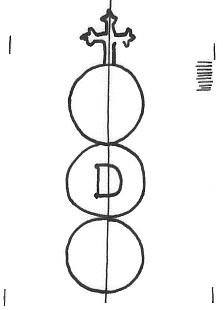 DescripciónTres círculos surmontados por una cruz. En el 1º una media luna, 2ª inicial.