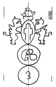 DescripciónEscudo de Génova sobre dos círculos. 1º monograma.2º número.