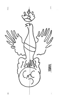DescripciónÁguila coronada sobre un círculo con iniciales.