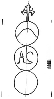 DescripciónTres círculos surmontados por una cruz. En el 1º una media luna, 2ª iniciales.