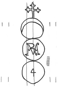 DescripciónTres círculos surmontados por una cruz. En el 1º una media luna, 2ª monograma y 3º número.