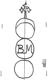 DescripciónTres círculos surmontados por una cruz. En el 1º una media luna, 2º iniciales.