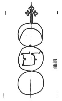 DescripciónTres círculos surmontados por una cruz. En el 1º una media luna, 2ª iniciales.