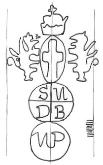 DescripciónEscudo de Génova sobre dos círculos con iniciales.