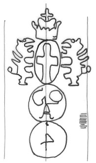 DescripciónEscudo de Génova sobre dos círculos con iniciales.