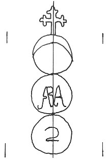 DescripciónTres círculos surmontados por una cruz. En el 1º una media luna, 2ª monograma y 3º número.
