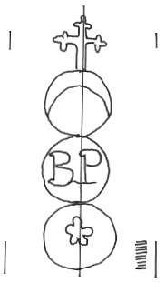 DescripciónTres círculos surmontados por una cruz. En el 1º una media luna, 2º iniciales 3º una flor.