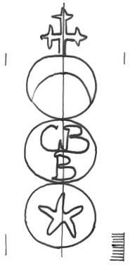 DescripciónTres círculos surmontados por una cruz. En el 1º una media luna, 2ª iniciales y 3º una estrella.