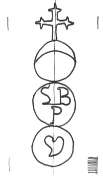 DescripciónTres círculos surmontados por una cruz. En el 1º una media luna, 2º iniciales, 3º corazón.