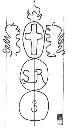 DescripciónEscudo de Génova sobre dos círculos. 1º iniciales. 2º número.