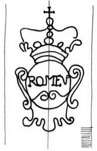 DescripciónEscudo coronado al pie cartela con apellido del fabricante.