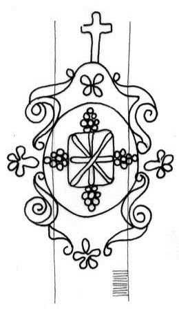 DescripciónEscudo surmontado por una cruz latina, con la cruz de san Andres en el campo.
