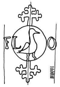 DescripciónAve dentro de un círculo surmontado por una cruz y otra en la base, con iniciales laterales.