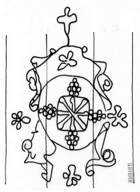 DescripciónEscudo surmontado por una cruz latina, con la cruz de san Andres sobre otra griega en el campo, rodeadas de 4 grupos de circulitos.