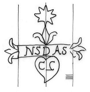 DescripciónCorazón con iniciales surmontado con una cartela con iniciales, lises y estrella.