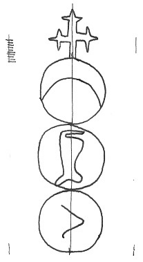 DescripciónTres círculos surmontados por una cruz. En el 1º una media luna, 2º una pierna. 3º signo.