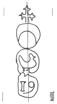 DescripciónTres círculos surmontados por una cruz. En el 1º una media luna, 2º Un pato 3º números.