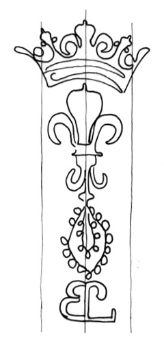 DescripciónFlor de lis coronada sobre monograma.