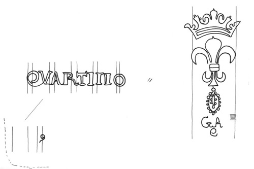 DescripciónLis coronada con iniciales al pie. Izquierda apellido del fabricante.