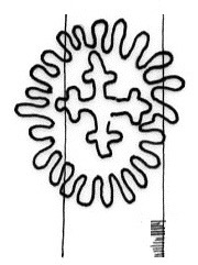 DescripciónCruz trebolada dentro de un círculo de línea ondulada.