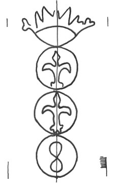 DescripciónTres círculos surmontados por una corona. En el 1º y 2º flor de lis, 3º número.