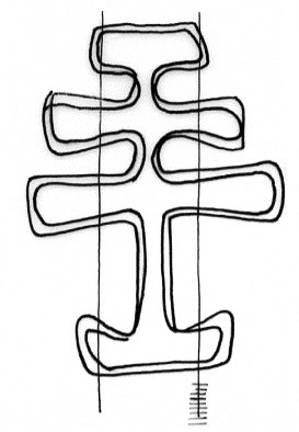 DescripciónCruz de tres brazos (papal o Patriarcal) de doble línea.