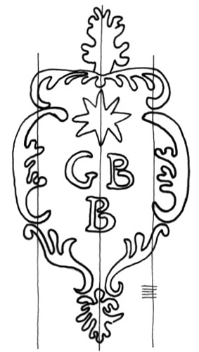 DescripciónEscudo con iniciales en el cuerpo.