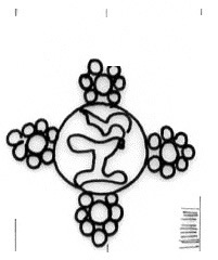 DescripciónUn círculo con grupos de circulitos, en centro monograma vertical del fabricante.