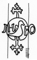 DescripciónAve dentro de un círculo surmontado por una cruz y otra en la base, con iniciales laterales.
