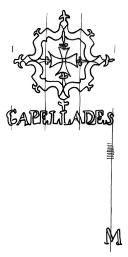 DescripciónEscudo con una cruz de Malta en el campo. Al pie topónimo y en la parte inferior del corondel adyacente derecho la letra M.