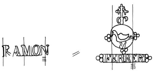 | Número - Codigo | B0895 - D. Aves | | Codigo2 | W. Nombres, apellidos, topónimos y palabras | | Descripción | Una paloma dentro de un círculo, adornada de circulitos, surmontada por una cruz, al pie cartela con apellido del fabricante, a la izquierda el nombre. | | Iniciales | -- | | Dimensión | 13/52 = 64/63 | | Distancia corondeles | 23/23 = 23 mm. | | Puntizones | 10 = 10 | | Fabricante | Ferrer, Ramón | | Lugar | Cataluña | | Depositario | A.H.P.M. - Archivo Histórico Provincial de Málaga (España) | | Tipo documento | Manuscrito | | Autor | Rafael de Guevara | | Título | Protocolo | | Impresor | -- | | Lugar impresion | -- | | Legajo | P.4736 | | Folio | 137/138 | | Dimensiones doc. | A 315/ An 435 | | Espesor papel | E 0,09 | | Procedencia | Nerja - Málaga | | Fecha documento | 1811 | | | | | n  | | | | |