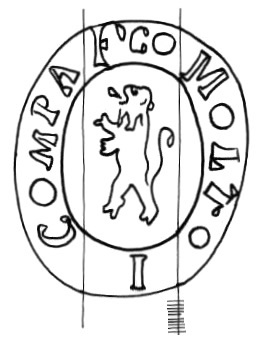DescripciónLeón inscrito en un doble círculo que lleva el nombre y apellido del fabricante.