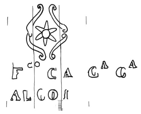 | Número - Codigo | B0906 - J. Cuerpos celestes: sol, luna y estrellas | | Codigo2 | W. Nombres, apellidos, topónimos y palabras | | Descripción | Estrella de seis puntas inscrita en cuatro filetes. En la base abreviaturas del fabricante y topónimo. Izquierda topónimo. | | Iniciales | -- | | Dimensión | 85/114 | | Distancia corondeles | 24/24/24 mm. | | Puntizones | 10 | | Corondeles portadores | 3 | | Fabricante | Garriga y Cía., Francisco | | Lugar | Alcoy - Alicante | | Depositario | A.H.P.M. - Archivo Histórico Provincial de Málaga (España) | | Tipo documento | Manuscrito | | Autor | Rafael de Guevara | | Título | Protocolo | | Impresor | -- | | Lugar impresion | -- | | Legajo | P.4736 | | Folio | 324/325 | | Dimensiones doc. | A 316/ An 440 | | Espesor papel | E 0,09 | | Procedencia | Nerja - Málaga | | Fecha documento | 1812 | | | | | n  | | | | |