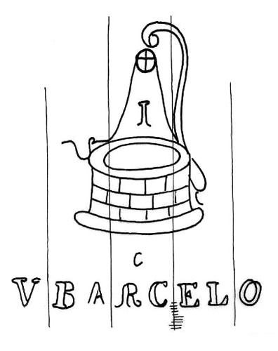 DescripciónAljibe con roldana y soga y cubo. Al pie inicial del nombre y apellido del fabricante.