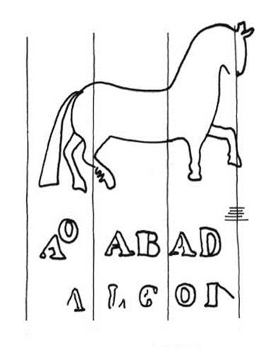 | Número - Codigo | B0914 - C. Mamíferos | | Codigo2 | W. Nombres, apellidos, topónimos y palabras | | Descripción | Caballo, en la base apellido del fabricante y topónimo. | | Dimensión | 97/75 | | Distancia corondeles | 22/25/23 mm. | | Puntizones | 10 | | Corondeles portadores | 3 | | Fabricante | Abad, Antonio | | Lugar | Alcoy - Alicante | | Depositario | A.H.P.M. - Archivo Histórico Provincial de Málaga (España) | | Tipo documento | Manuscrito | | Autor | Rafael de Guevara | | Título | Protocolo | | Impresor | -- | | Lugar impresion | -- | | Legajo | P.4736 | | Folio | 443/444 | | Dimensiones doc. | A 312/ An 440 | | Espesor papel | E 0,11 | | Procedencia | Nerja - Málaga | | Fecha documento | 1812 | | | | | n  | | | | |