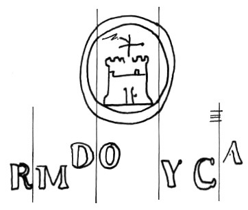 DescripciónTorre de dos tramos dentro de un doble círculo, en la base abreviaturas del nombre y apellido del fabricante.