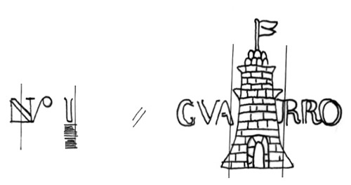 DescripciónTorre con bandera, cruzada por una cartela con el apellido del fabricante.Izquierda nº1.