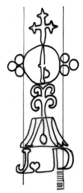 DescripciónRelicario con puñal dentro del ostentorio, en la base iniciales del fabricante.