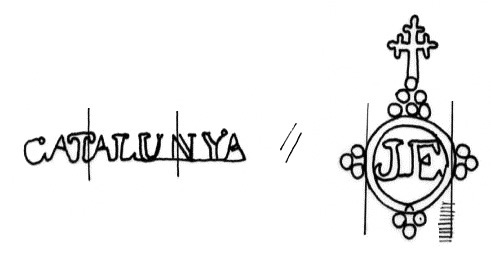 DescripciónDoble círculo con grupitos de circulitos con las iniciales del fabricante en el interior. Derecha topónimo.