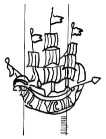 DescripciónUna carabela, en el casco apellido del fabricante.