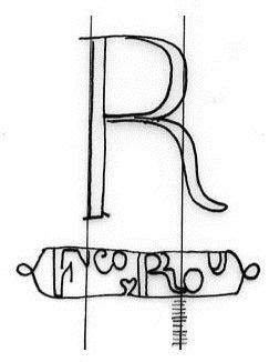 DescripciónLetra capital con cartela en la base con abreviaturas del nombre y apellido del fabricante.